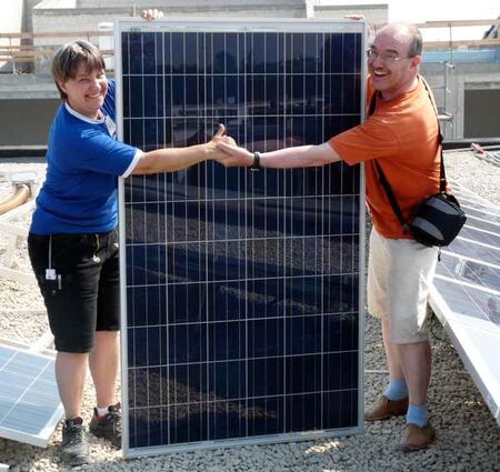 Installation auf der Turnhalle der Panoramaschule in Frankfurt - Nied.